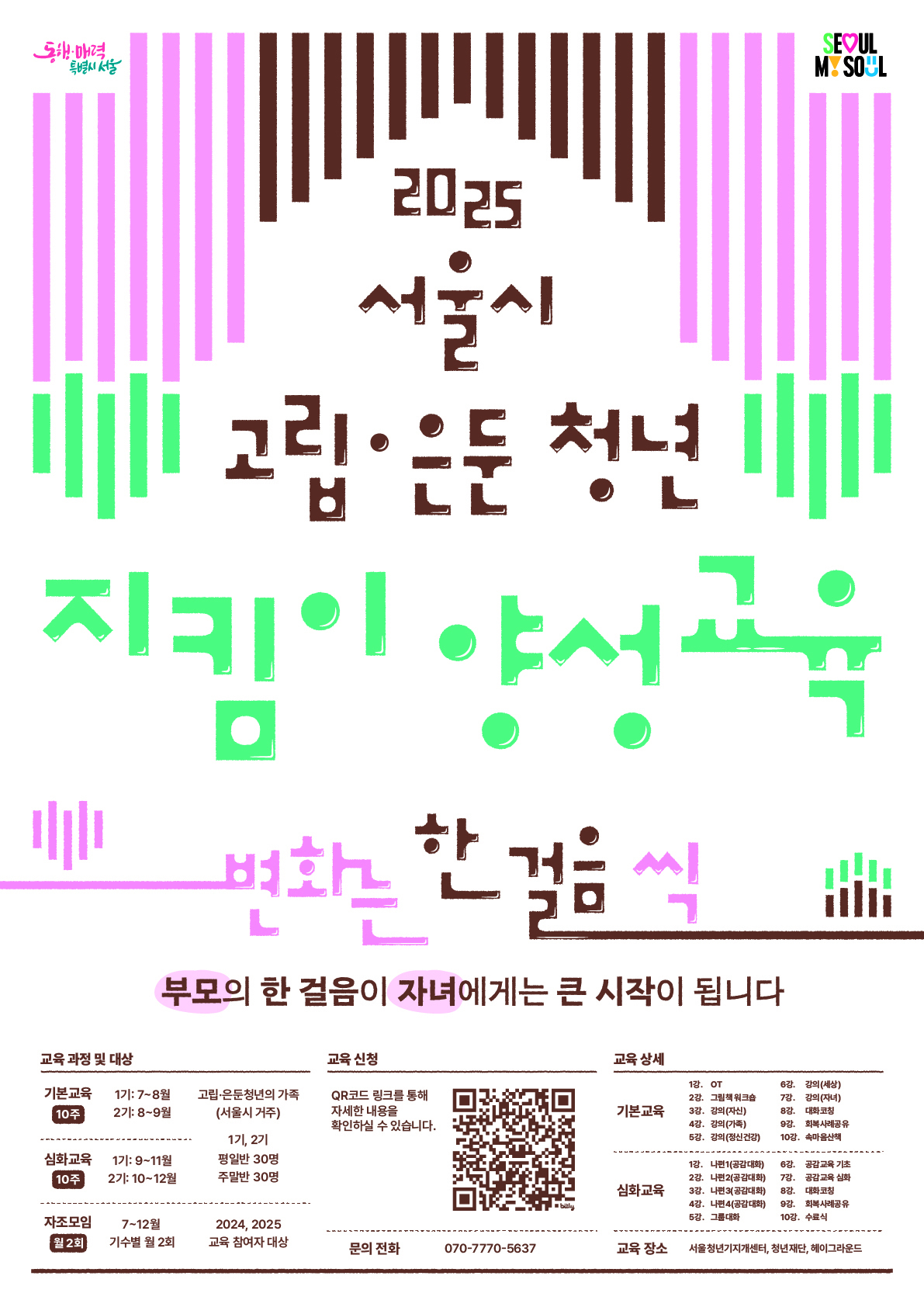 - 신청 방법 : 페이지 하단의 링크(또는 포스터 내 QR코드)를 통해 세부내용(교육과정 등) 확인 후, 신청서 제출